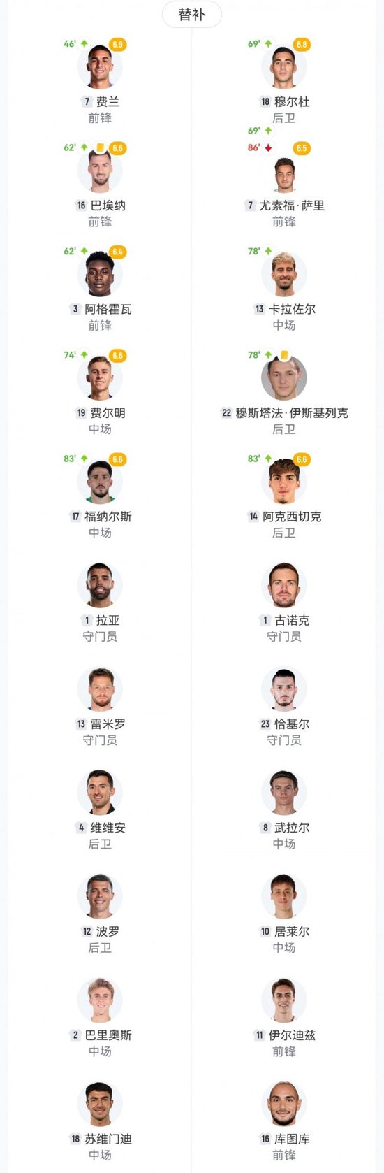 [雙方正選及換人信息]