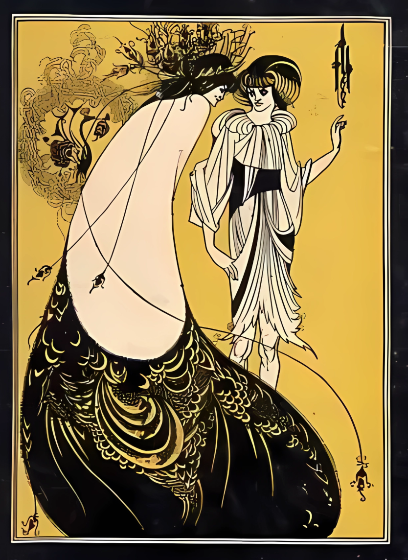 19世紀80年代,照相製版的方法誕生,使得插圖可以像拍照片一樣直接貼在書頁上,這一技術是英國著名插圖藝術家奧博利·比亞茲萊的發明。比亞茲萊是唯美主義運動的突出人物,他深受「新藝術」的裝飾藝術風格影響,這種風格以線條長而曲折有致為特色,在他的作品中表現得十分明顯。他本人也因此被稱為「新藝術插畫家」。他最知名的作品是為王爾德的《莎樂美》繪製的插圖。