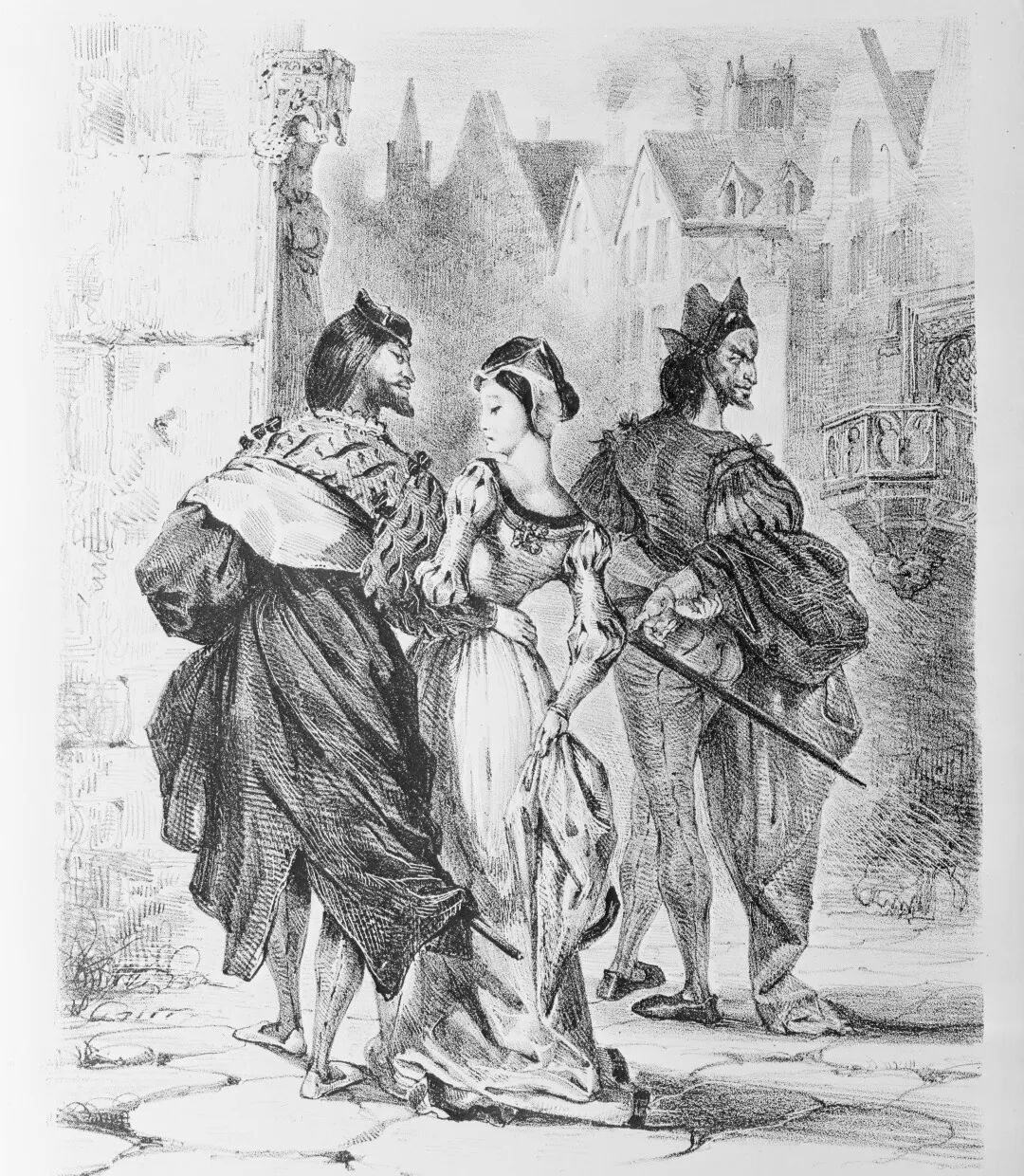 法國知名畫家歐仁·迪拉錫羅瓦是浪漫主義先驅盧梭的崇拜者,也深受其友人英國畫家李察·波寧頓、波蘭鋼琴家肖邦和法國作家佐治·桑浪漫主義思想的影響,成為法國繪畫浪漫主義的領袖。他的文學插圖是他突出的成就之一,其中最知名的是他為歌德《浮士德》的法文版創作的插圖,他本人也參與了此書的裝幀。