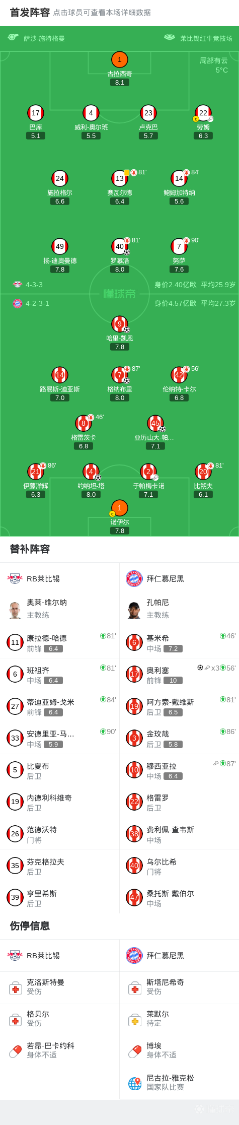 拜仁5-1萊比錫,奧利塞3傳1射,穆西亞拉傷癒送助攻