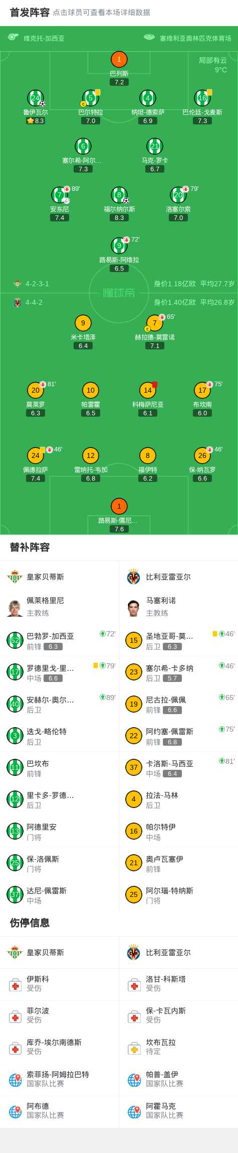 貝迪斯2-0九人維拉利爾,魯伊瓦爾建功,福爾納爾斯破門,科梅沙格拿染紅