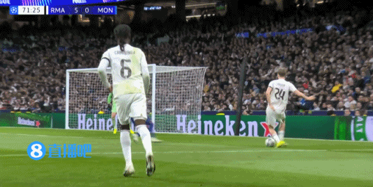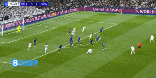下半場補時3分鐘,皇馬6-1摩納哥。