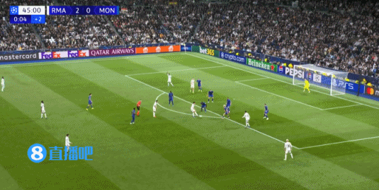 上半場補時2分鐘,皇馬2-0摩納哥。