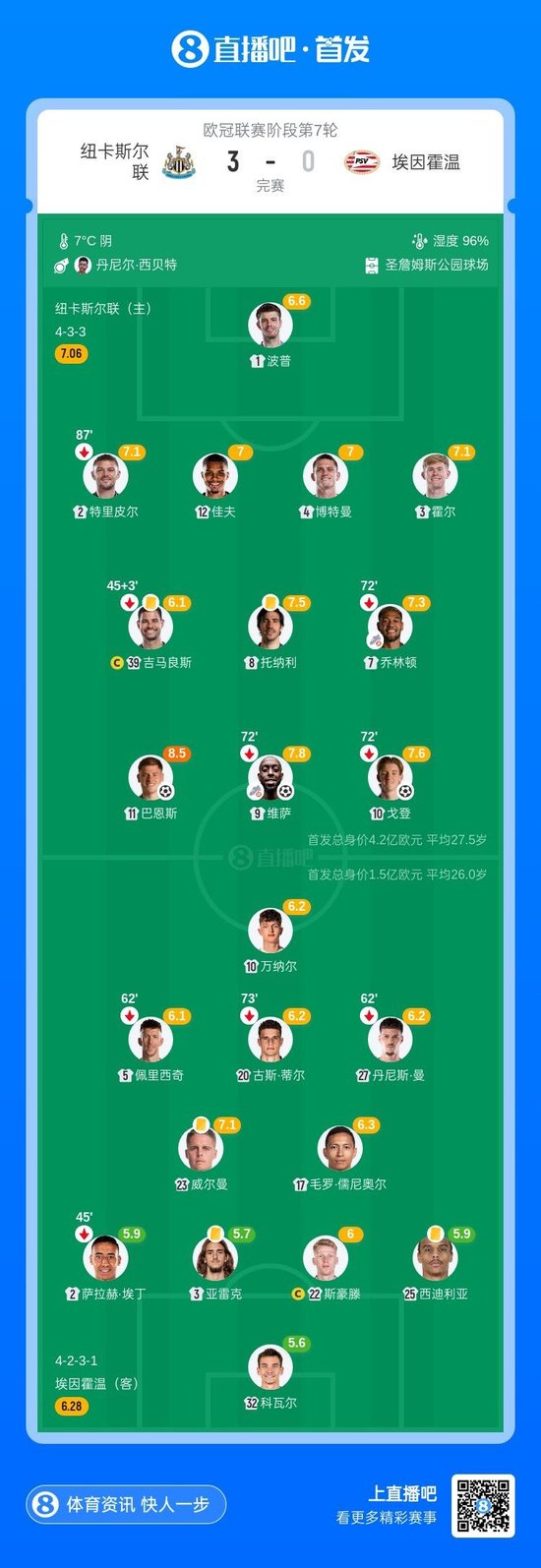 第30分鐘,燕豪芬後場停球失誤,維薩逼搶到禁區內將球捅給哥頓!後者輕鬆攻入空門!紐卡2-0領先燕豪芬↓