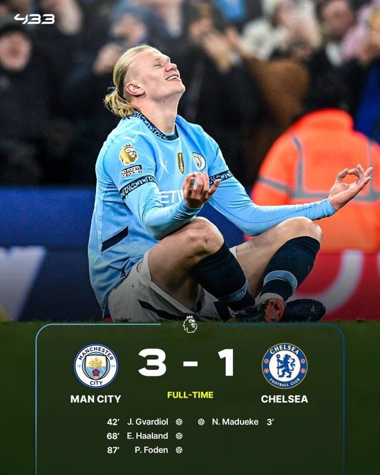 英超第23輪,曼城主場3-1逆轉車路士,6輪不敗,送對手7輪1勝。胡桑諾夫首戰失誤送禮,馬杜埃凱破門,加華度爾扳平,夏蘭特傳射建功,科頓破門,艾達臣助攻,山齊士出擊失誤。