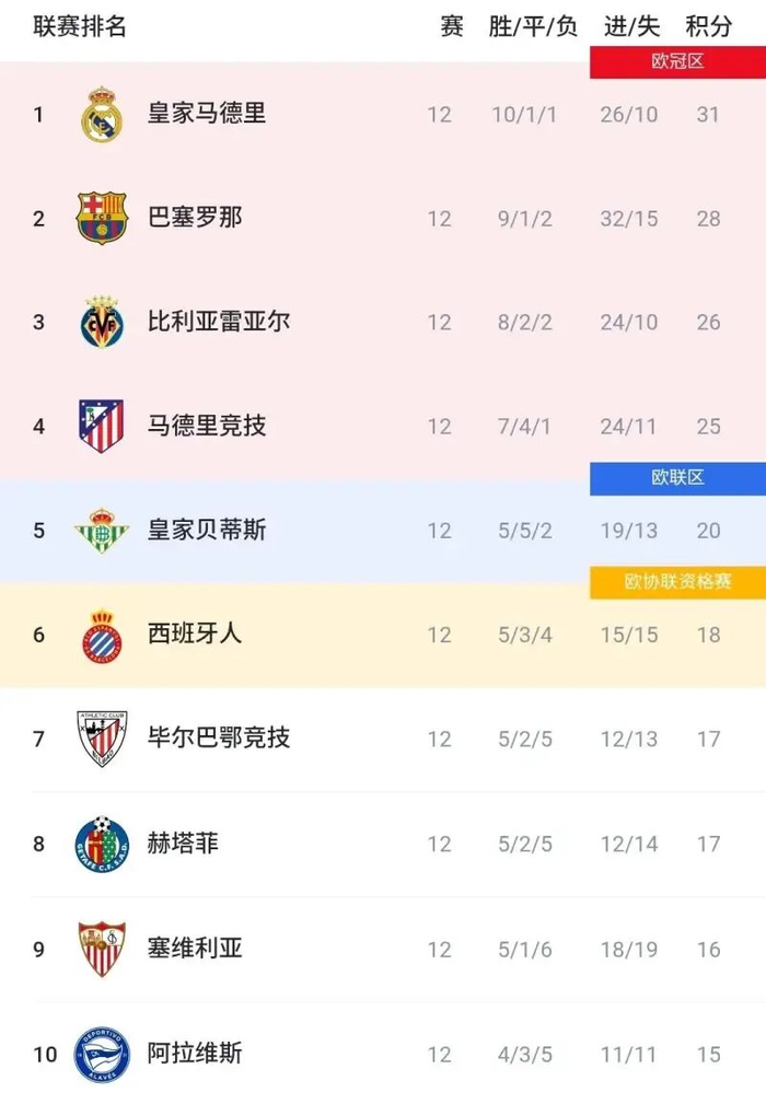 維拉利爾和馬體會均取勝,兩隊仍居三四名。貝迪斯本輪和波,愛斯賓奴落敗,兩隊仍處於5-6名,但分差拉大了1分。