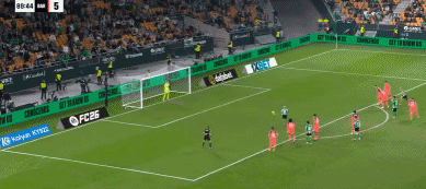 第90分鐘,高迪禁區內鏟翻艾巴德,球證射12碼,庫祖-靴南迪斯主射命中,3-5。