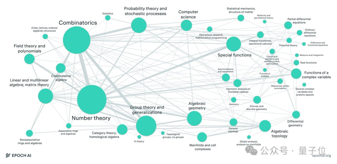 其中數論和組合學最多,合計約佔所有MSC2020(數學學科分類系統2020版本)的34%。