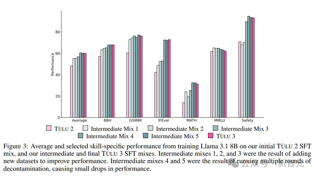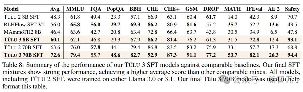 研究人員在精心選擇的提示和完成內容上執行監督式微調(SFT),首先確定了在使用Llama 3.1模型訓練在TÜLU 2數據集上作為基準時,哪些技能落後於最先進的模型,然後有針對性地收集高質量的公開數據集和合成數據集。