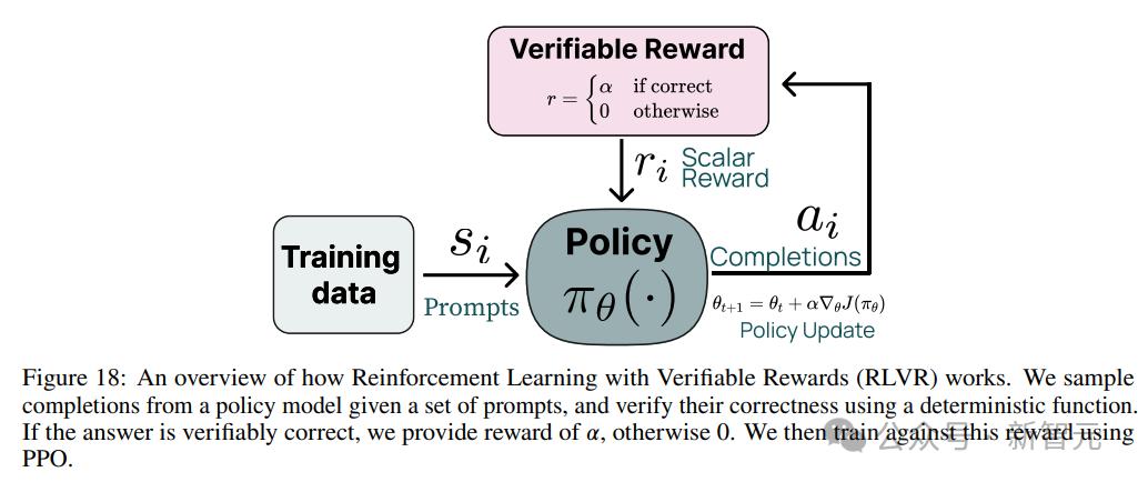 RLVR基於現有的強化學習人類反饋(RLHF)目標,但將獎勵模型替換為驗證函數,當應用於具有可驗證答案的領域,其在GSM8K等基準測試上顯示出針對性的改進,同時還能保持其他任務的性能。