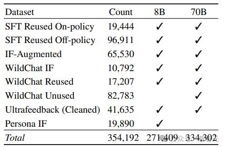 研究人員主要使用直接偏好優化(DPO),針對新構造的、基於策略的合成偏好數據,以及從選定提示中獲得的離策略數據。與SFT階段一樣,我們通過徹底的實驗確定了最佳的偏好數據混合,揭示了哪些數據格式、方法或超參數能帶來改進。