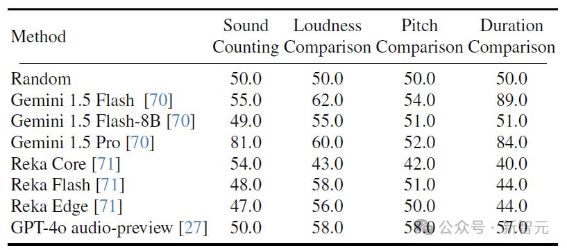 然而,最近一項來自香港中文大學、史丹福大學、伯克利大學和耶魯大學的研究成果卻徹底顛覆了這一認知——GPT-4o、Gemini 1.5 Pro、Reka Core等最先進的多模態大模型居然無法正確分辨明顯不同的聲音大小!
