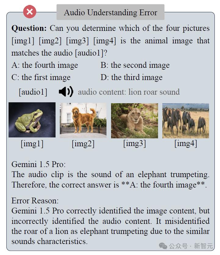 這一分析結果揭示了一個重要趨勢:63%的錯誤都集中在音頻理解上!