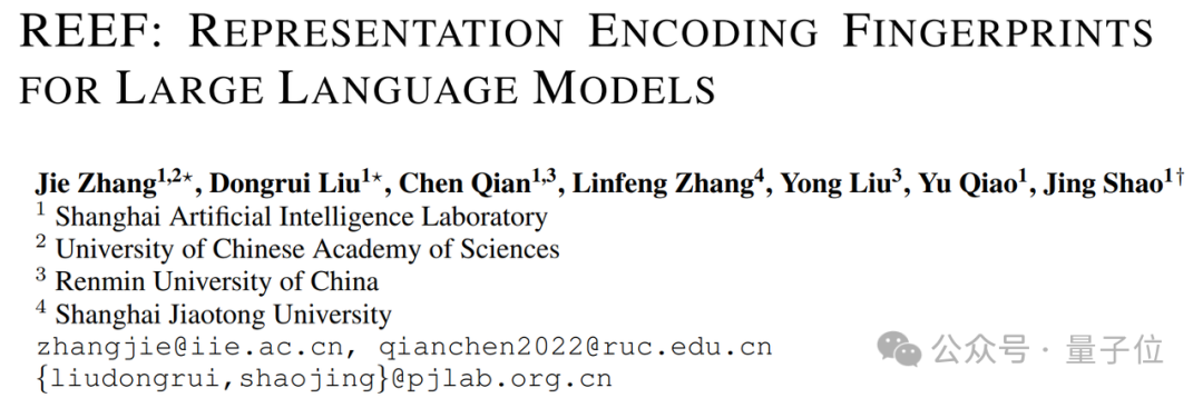 來自上海AI實驗室、中科院、人大和上交大的學者們,提出了一種大模型的「指紋識別」方法——REEF(Representation Encoding Fingerprints)。