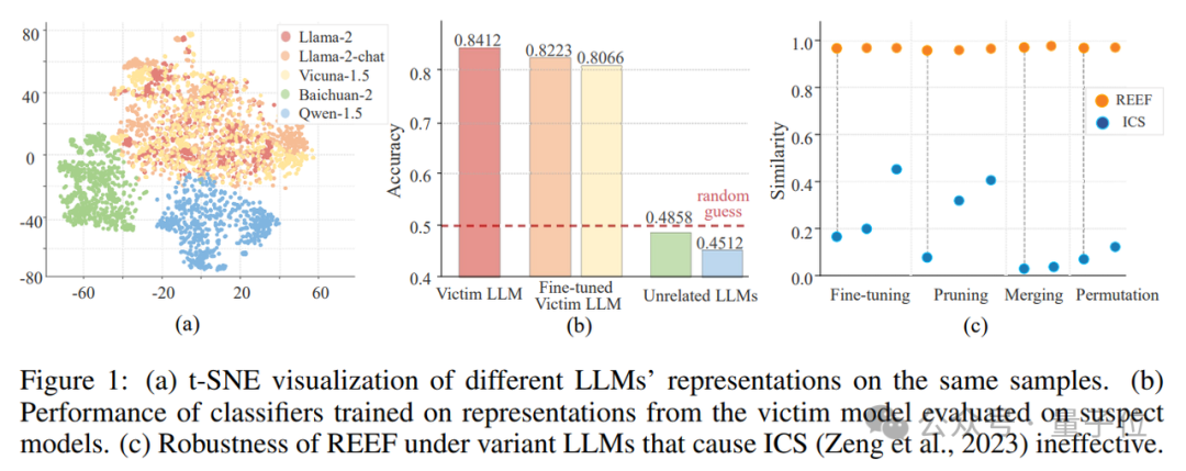 REEF依賴模型在微調後表徵「不變性」的特點,基於表徵編碼實現對大模型的「指紋鑒別」。