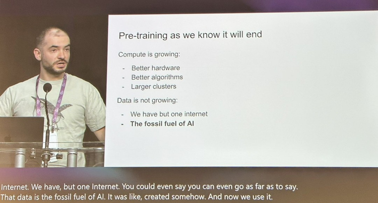 不過,隨著參數量的繼續增加,互聯網數據似乎不夠用了Ilya 在 NeurIPS 2024 中提出的觀點是「預訓練即將結束」,原因是隨著計算能力提升,互聯網上的數據量並沒有明顯增長。