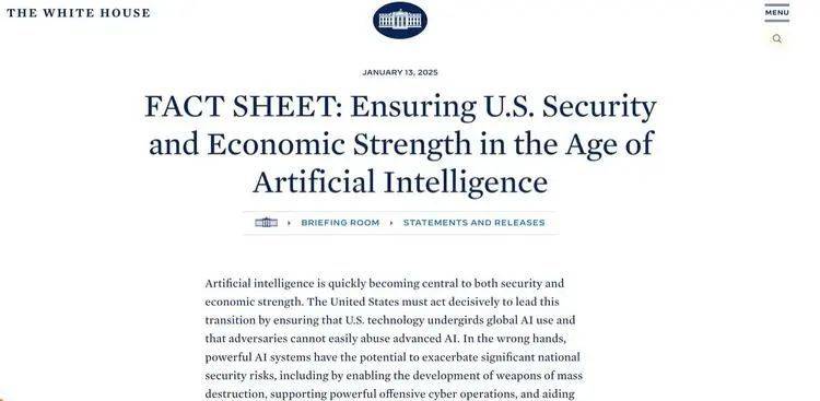 美國當地時間1月13日,白宮剛發佈了備受爭議的AI出口禁令。
