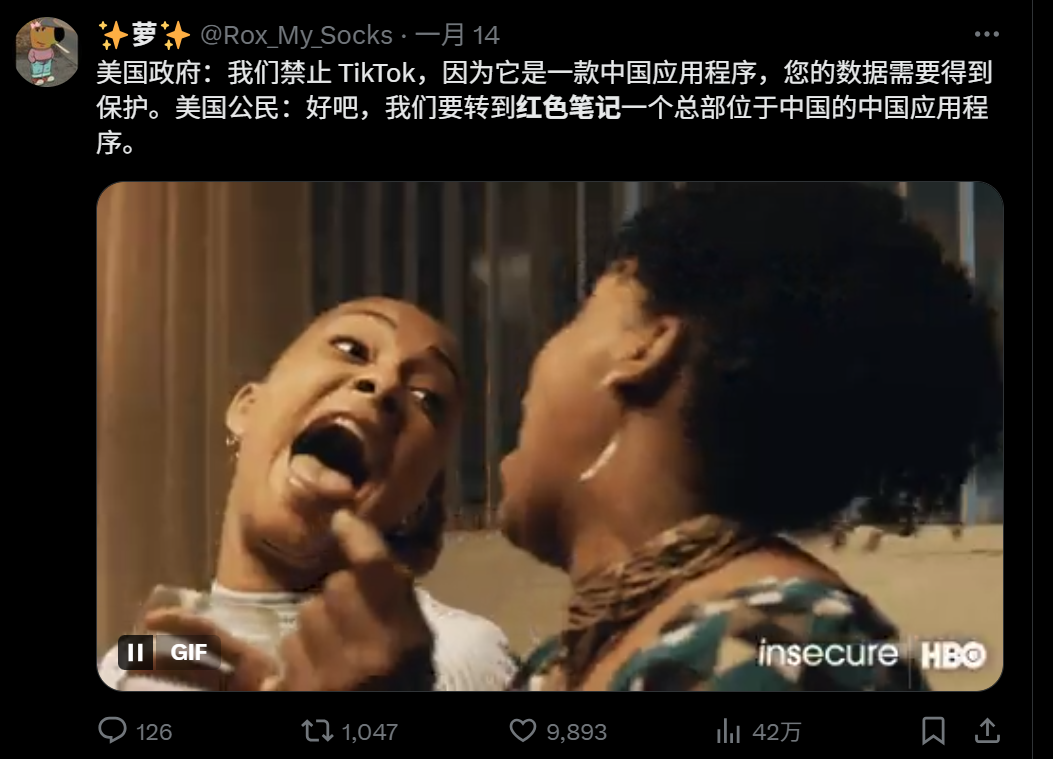 事件導火索是tiktok被封,湧入中國社媒的外國人大多是原本tiktok的用戶,即「tiktok難民」。