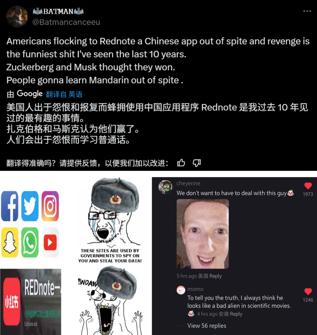 美國網民也不是一卸載tiktok就湧入小紅書,而是被一些外國人在小紅書,有趣的跨文化交流所種草。
