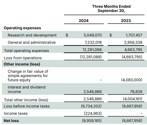 需要提醒的是,自 2022 年 2 月成立以來,該公司累計淨虧損 1494 萬美元,沒有產生任何收入。截至 2024 年 6 月 30 日,其現金和等價物為 1380 萬美元。此後又經歷幾輪股權融資,現金頭寸提高至 1.25 億美元。當下現金仍然充裕,且考慮到上個季度 254 萬美元的相對較小的現金消耗,他們未來還有很長的路可走。