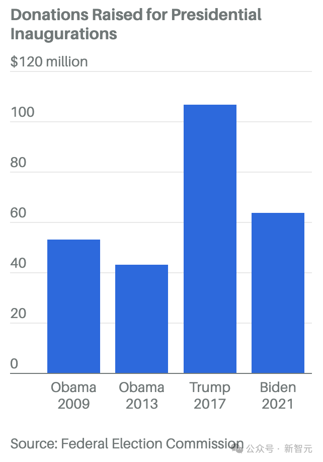 說到這裏,就不得不提一下特朗普的就職典禮基金了——據保守估計,總金額至少高達1.5億美元,成功刷新紀錄。