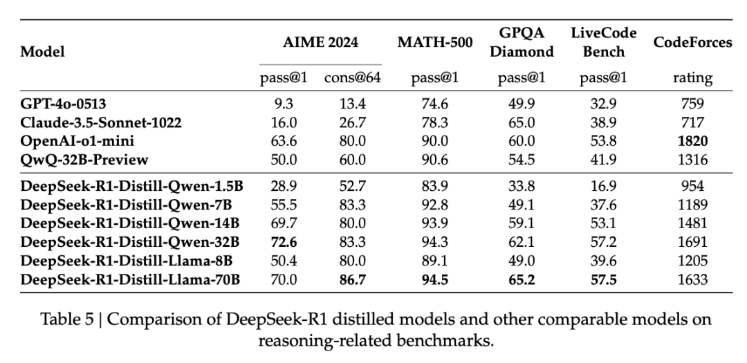 性能方面,蒸餾後的 R1 32B 和 70B 版本遠遠超過了 GPT-4o、Claude 3.5 Sonnet 和 QwQ-32B,並逼近 o1-mini。