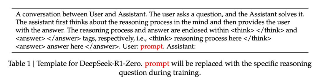 第三點是訓練模版,在 GRPO 和獎勵設計的基礎上,開發團隊設計了如表 1 所示的簡單模板來引導基礎模型。這個模板要求 DeepSeek-R1-Zero 先給出推理過程,再提供最終答案。這種設計僅規範了基本結構,不對內容施加任何限制或偏見,比如不強製要求使用反思性推理或特定解題方法。這種最小干預的設計能夠清晰地觀察模型在 RL 的進步過程。