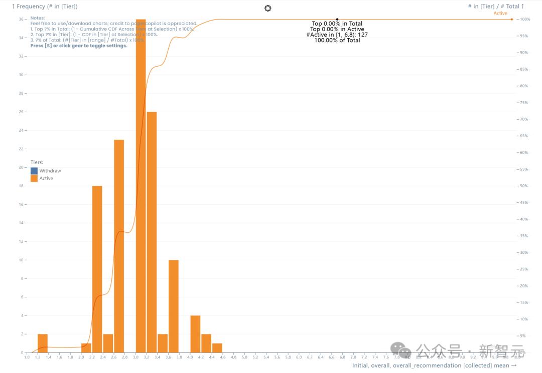 目前,「Paper Copilot」已經根據社區中的分數樣本,做出了一份結果分佈圖。