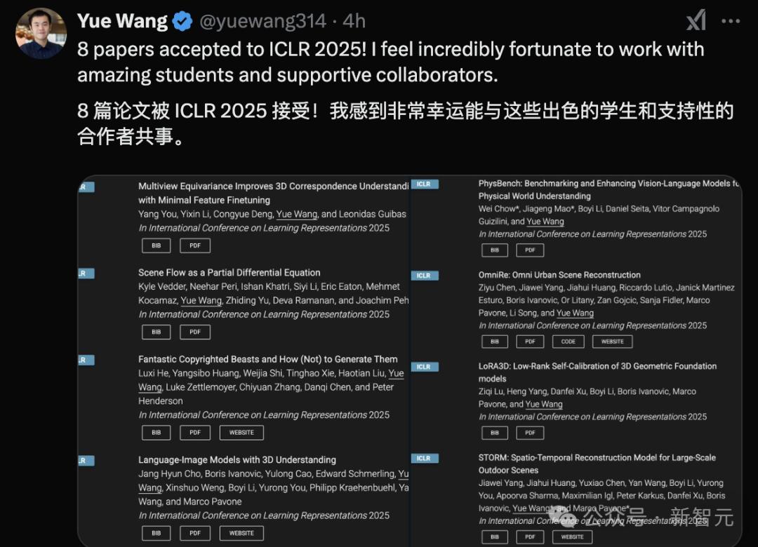 南加州大學CS助理教授Yue Wang,與合作者一起,共有8篇論文被錄用。
