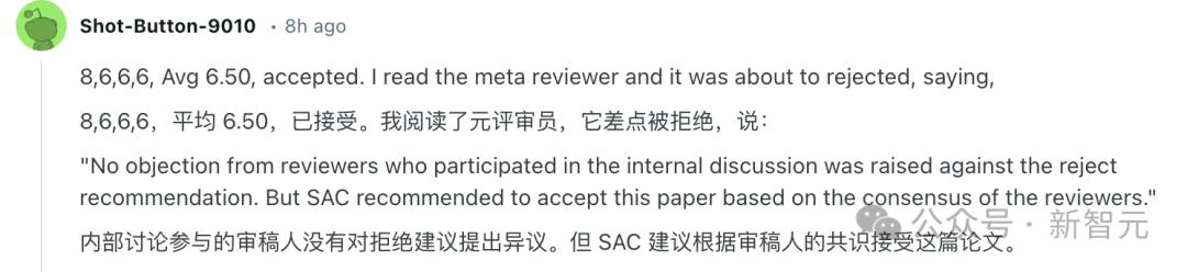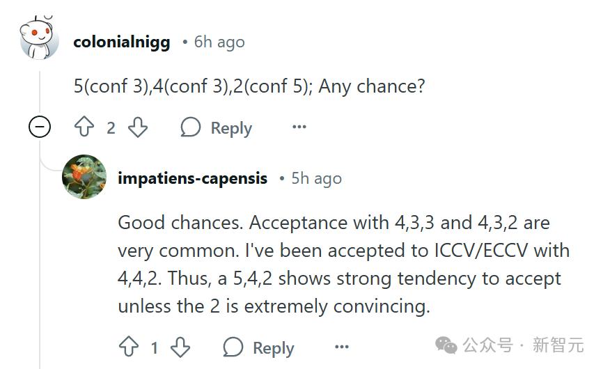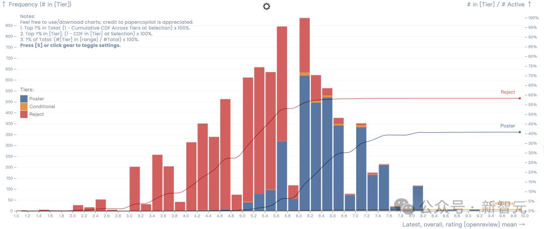 根據「Paper Copilot」的統計,評審均分在6.0以上被接受的可能性較大,均分在5.0以下幾乎不會被接受。