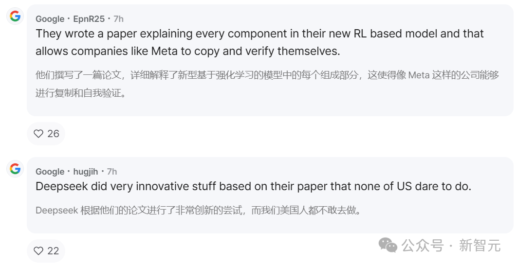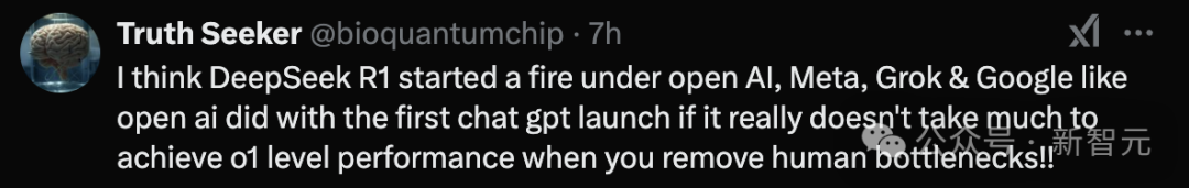 更是有網民被震驚到:「DeepSeek R1在OpenAI、Meta、Grok以及Google的屁股下點了一把火,就像Open AI在第一次推出ChatGPT時那樣震撼。如果去掉人力瓶頸,達到o1級性能真的不需要花太多錢!!」