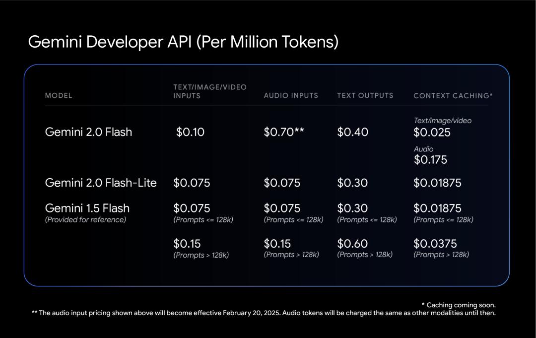 如今,Google將通過 Google AI Studio 和 Vertex AI 中的 Gemini API 向公眾發佈更新之後的 Gemini 2.0 Flash。開發人員現已可以使用 2.0 Flash 模型構建生產級應用程序。