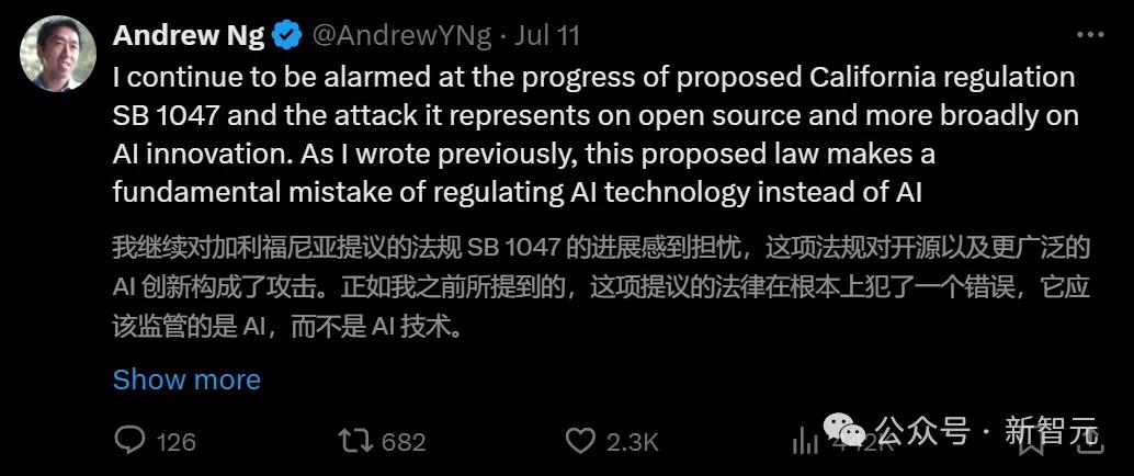 Yann LeCun、李飛飛、吳恩達等AI大牛們,都曾多次表達了對這項「扼殺開源AI,迫使AI創新暫緩甚至停止」的法案的不滿。