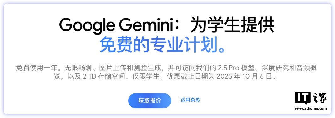 目前,Google正在進行 Google Gemini Pro 學生優惠活動,10 月 6 日前(美國 IP)用戶可以在通過學生信息認證後,綁定 VISA / Mastercard / AMEX 等信用卡(支持內地發行的卡片),免費領取 1 年 Google AI Pro 服務。