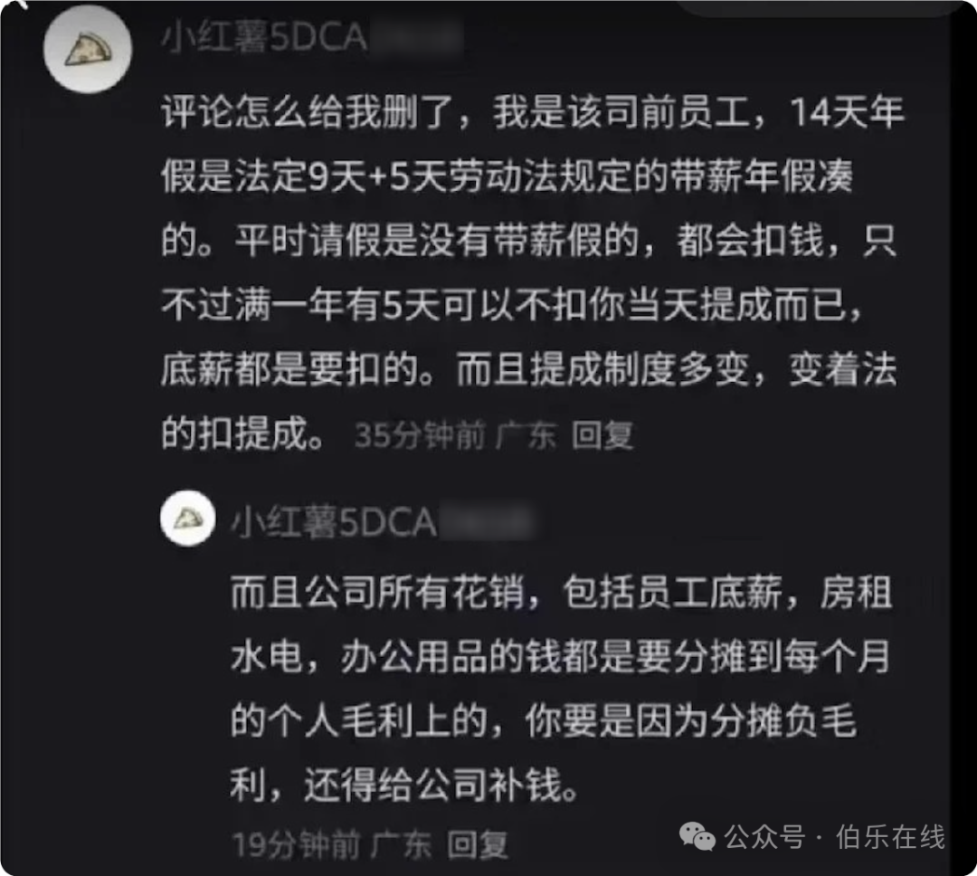還有自稱是該公司前員工的網民補充解釋了 14 天年假是怎麼回事。不過這一說法尚未得到公司方面的回應。
