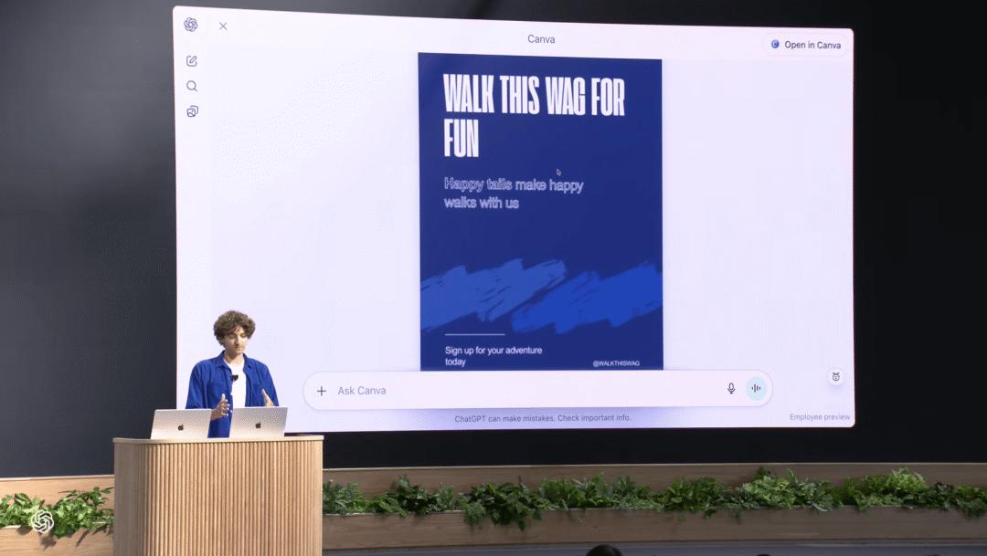 想做宣傳海報?在 ChatGPT 里一句「幫我做一張海報」,它會直接 @Canva,跳出完整設計界面。