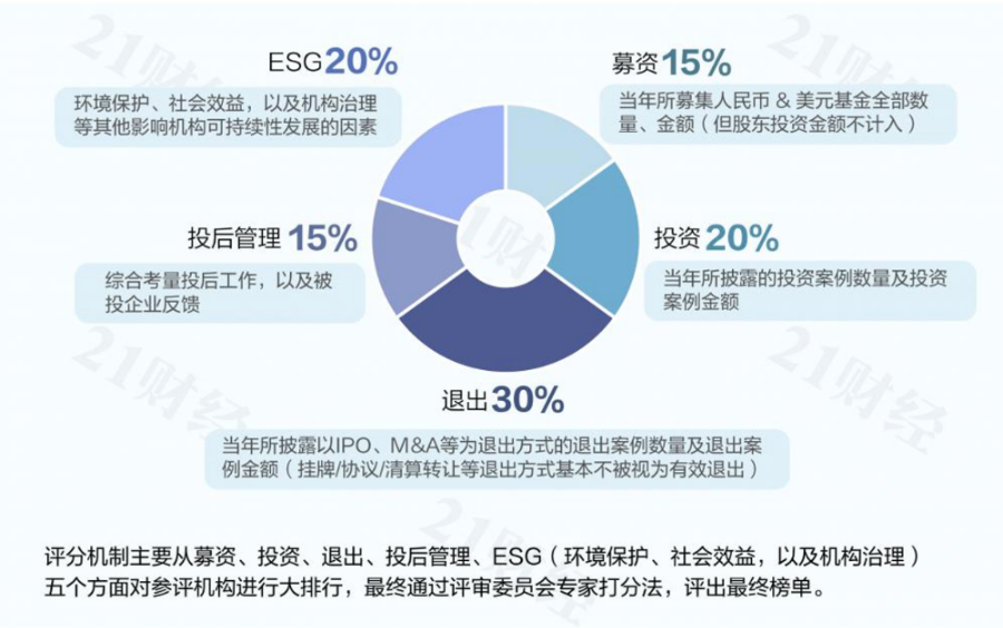 通過問卷調研、收集各機構“募投退”等業績表現,參考第三方機構的數據,結合行業專家評委會(成員來自母基金、律師事務所、FA機構、高成長公司、媒體等)對投資機構在ESG等方面的考量。