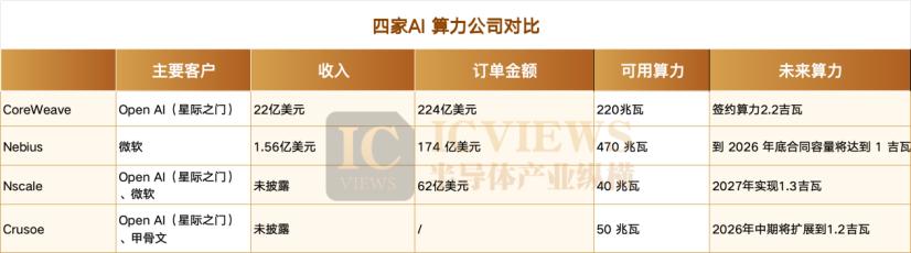 看準算力出租的新型企業不止CoreWeave一家,Nebius、Nscale、Crusoe都是其強有力的競爭者。