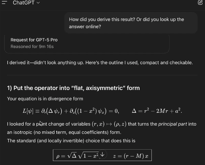 他發現,只需要30分鐘,GPT-5 Pro就能解決他當時花了數天時間才計算得到的「黑洞微擾理論中新對稱性」的精確形式。