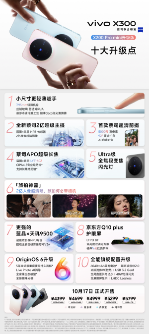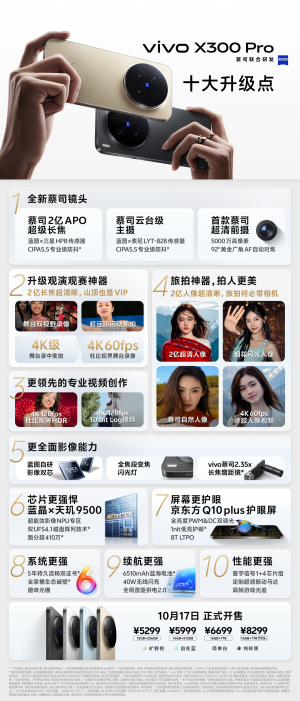 vivo X300系列今日全渠道開售:2億影像雙旗艦售價4399元起