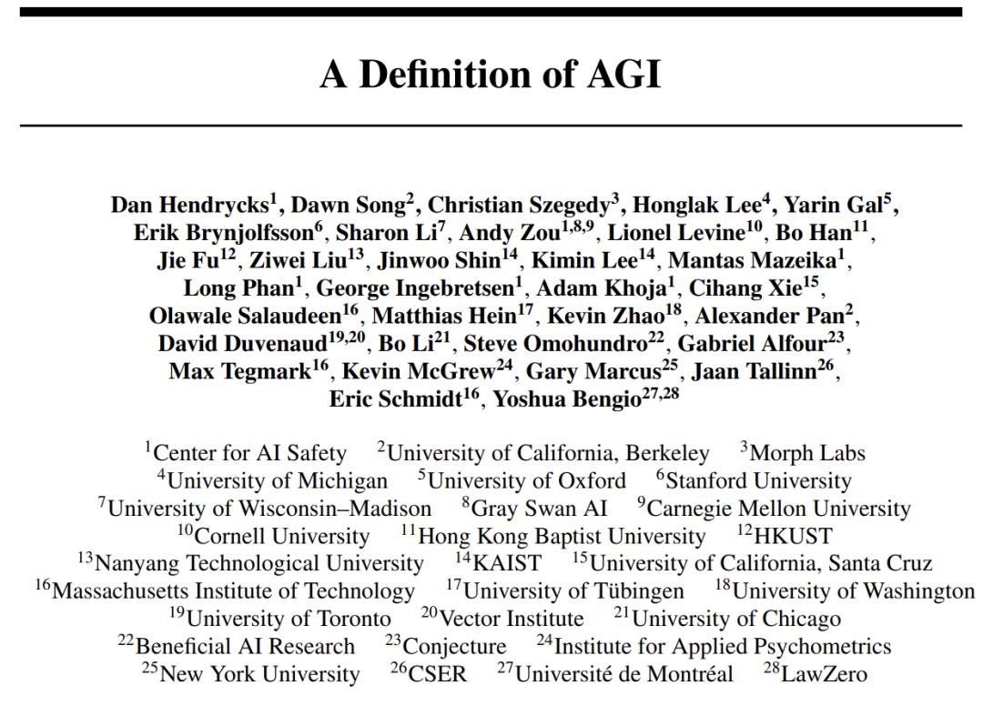 - 論文鏈接:https://www.agidefinition.ai/paper.pdf