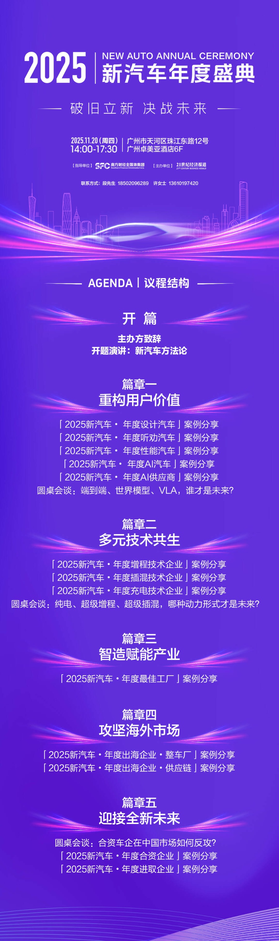 本屆盛典還將設置三大圓桌會談,聚焦智能駕駛技術路線抉擇、動力形式未來之爭與合資品牌反攻策略,通過關鍵議題的深度碰撞釐清行業方向。