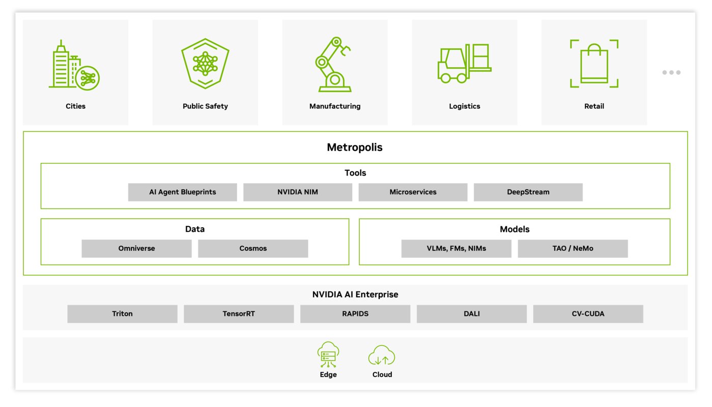 在動態現實場景中,物理AI需要低延遲感知和實時決策(如自動駕駛避障、智慧城市交通調度),Metropolis 通過「邊緣視覺分析+算力協同」構建感知底座,既可以通過感知設備進行多模態物理動態捕捉,還能在邊緣端進行實時推理加速秒,滿足物理AI毫秒級動作生成需求。