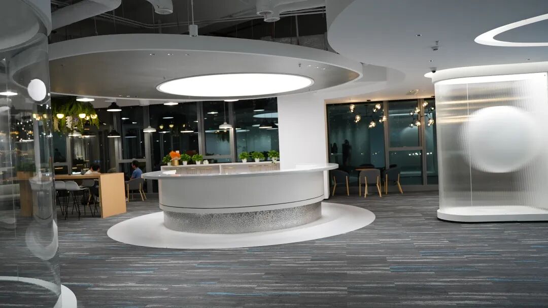 一進門,就能感受到這家科技公司與眾不同的氣質。辦公室的佈置透著科幻氛圍,會議室以科幻作品或作家命名,最顯眼的當屬前台那個純白色的藝術裝置。