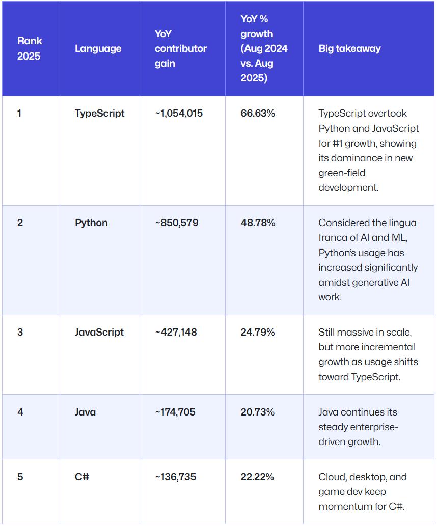 但 GitHub 近日發佈的《Octoverse 2025》報告卻給出了一個不一樣的答案:TypeScript。