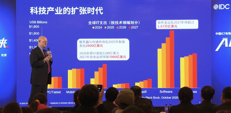 【TechWeb】12月3日消息,在IDC FutureScape 2026:中國ICT市場預測論壇上,IDC全球研究集團副總裁Rick Villars發表題為《邁向智能新紀元:重塑全球IT產業的三大驅動力》的主旨演講。