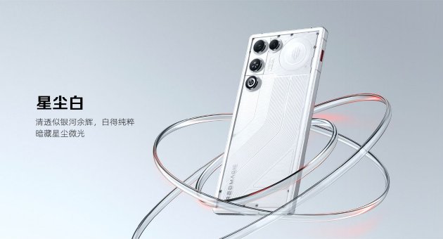 外觀設計上,紅魔11 Air帶來星塵白、量子黑、極光銀三款潮流配色,在延續紅魔獨有的透明美學的基礎上,首次採用全系透明機身設計,並將黑膠唱片的復古質感、賽車跑道的速度激情與幾何圖形元素融入其中,搭配3D弧形玻璃後蓋,既彰顯極致科技感,又保證了舒適的握持手感。同時標誌性的背部RGB燈得到保留,進一步提升電競氛圍。