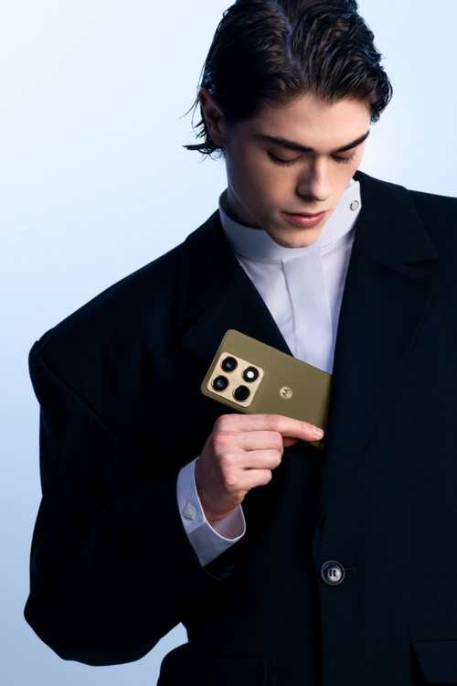 色彩方面,聯想moto與潘通聯合調打造“墨嵐黑”與“梧桐金”兩款高定配色,使科技產品亦能成為詮釋個人品位的精緻配飾。