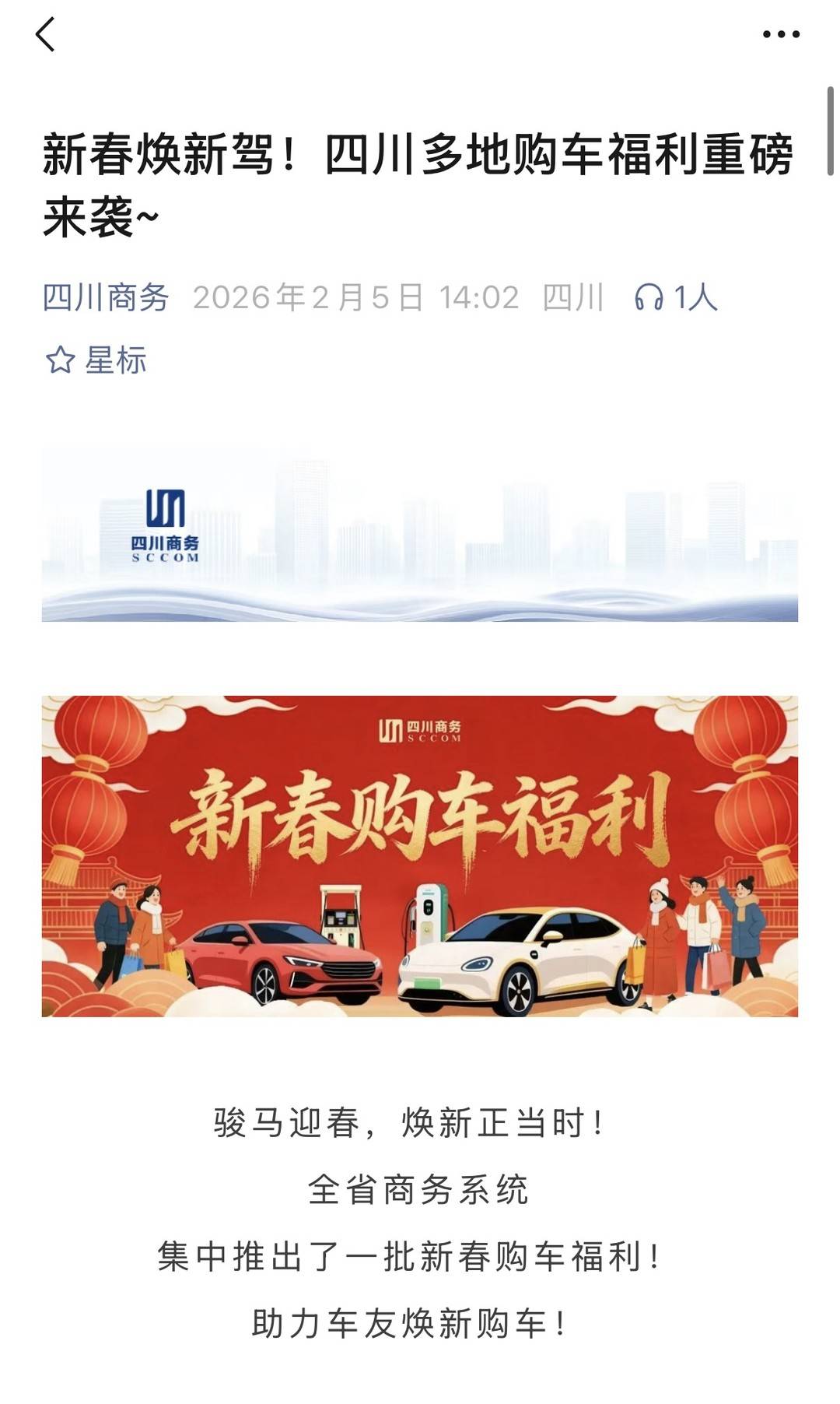 駿馬迎春,煥新正當時!2月5日,記者從四川省商務廳獲悉,全省商務系統集中推出了一批新春購車福利,助力車友煥新購車。