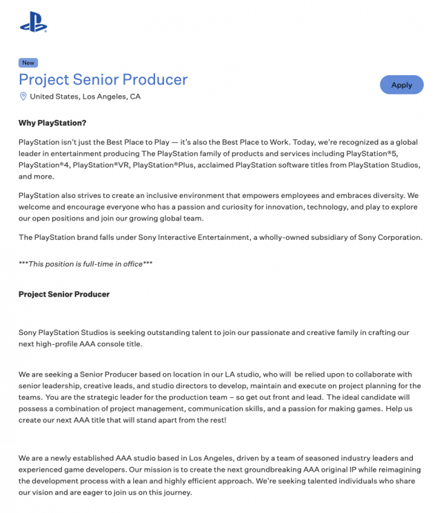 PlayStation 將在洛杉磯為一款大型 AAA 遊戲開設新工作室